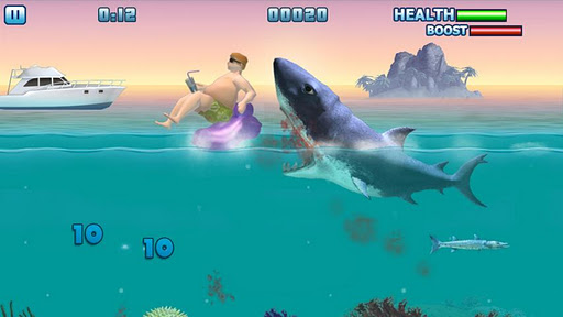Feed your shark and grow to become the most formidable predator of the seas! But beware... this will soon attract the attention of armed shark hunters both above and below the waves.