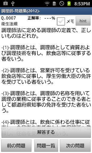 | Appname: 調理師免許試験-問題集(2012年版)- Developer: edusoft Price: Size: 1,1M | Version: 1.9.8.0 min. Android Version: 1.5 oder höher Category: Lernen Download: Please scroll down |