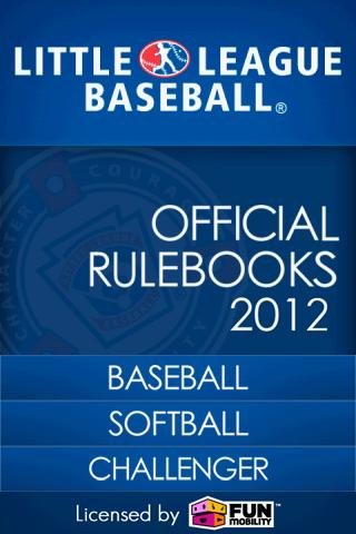 Welcome to the 2012 Little League® Rulebooks App licensed by FunMobility! The 2012 Little League® Rulebooks App provides Little League rules and is easy to navigate, with search, table of contents, and bookmark functionality.