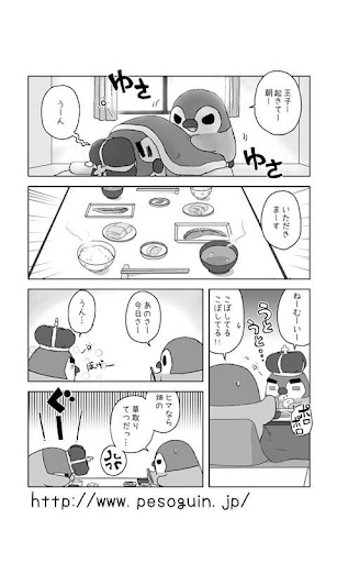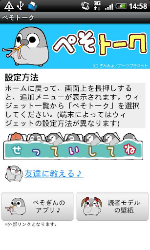 ホーム画面で「ぺそぎん」が、気ままに呟きます。