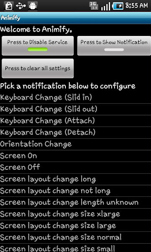 Obviously not all notifications will apply to all devices (for example, trying to set a notification for a keyboard detach or slide event is probably not going to do much if your phone/tablet doesn't have a keyboard!) Some of the notifications are really only applicable to sounds. For example, for a screen off event you will not see any animation, as the screen is off.