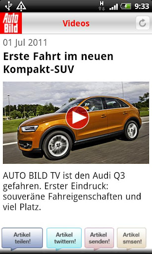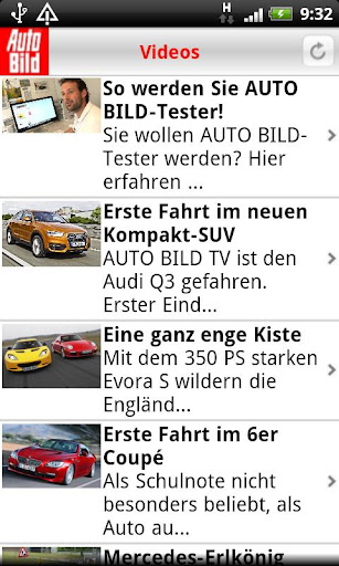 Die Top-Inhalte von autobild.de – jetzt auch fürs Android-Smartphone! In den drei übersichtlichen Rubriken News, Tests und Ratgeber bündeln wir für Sie die wichtigen Auto-Themen des Tages. Außerdem berichten wir live von allen großen internationalen Auto-Messen. Im Video-Channel können Sie sich alle Tests, Vergleiche und Fahrberichte sowie packende Reportagen in bewegten Bildern ansehen. Für den kommenden Urlaub oder die nächste Dienstreise steht Ihnen ein Staumelder zur Verfügung, durch den Sie über aktuelle Verkehrsbehinderungen informiert werden. Sie können die Meldungen nach Bundesländern, Autobahnen oder Bundesstraßen filtern.