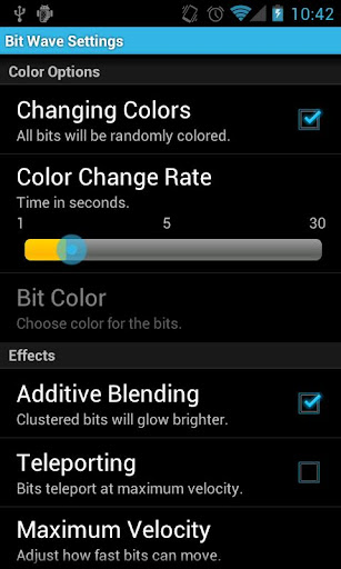 Bit Wave is a live wallpaper where waves of colorful bits flow across the screen. Bit Wave provides several options for customization including touch, color, physics, and performance.