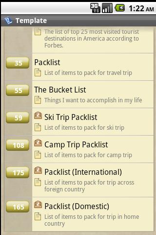 *** You need to install Checkmark To Do List app from market first to run the packlist app ***