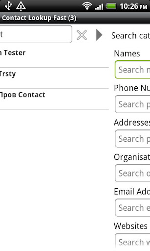 For example. Searching all categories of 1300 contact records in Contact Lookup Pro takes 1.2 seconds using a HTC Desire.