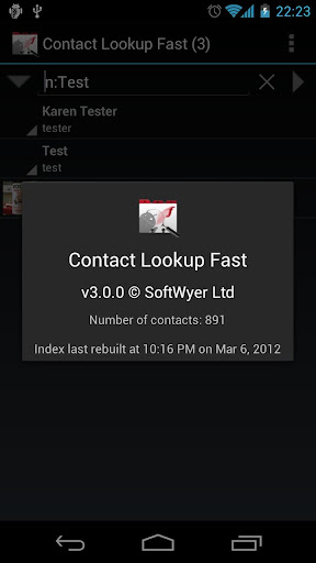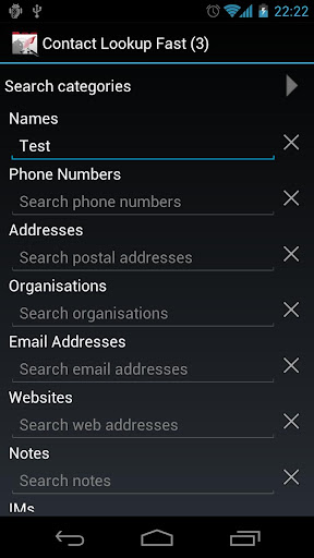 Searches ALL the major contact fields like Contact Lookup Pro, but is an order of magnitude faster.