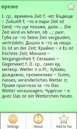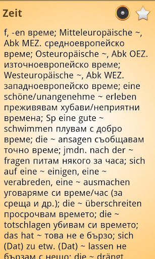 Dies ist ein Deutsch Bulgarisch Wörterbuch (Bulgarian - German and German - Bulgarian Dictionary, Немско-Български речник), es enthält 87000 Übersetzungsartikel. Das Wörterbuch ist OFFLINE und benötigt keine Internetverbindung.