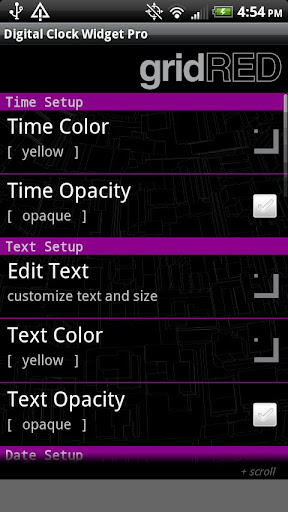 The Digital Clock Widget Pro (DCW Pro) like the DCW is an Android home screen application providing an alternative to the default clock widgets. The DCW enhances your existing screen layout by letting you customize font and background colors. This Pro version offers the following features: