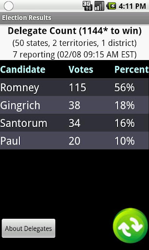| Appname: Election Results 2012 Developer: Kartal Apps Price: Size: 48k | Version: 1.3 min. Android Version: 2.1 oder höher Category: Nachrichten & Magazine Download: Please scroll down |