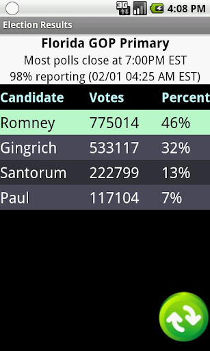 Real Clear Politics, CNN, and other political sites display data too large for one screen, and in too many pages. Election Results 2012 keeps all the races you're interested in in one convenient, fast app.