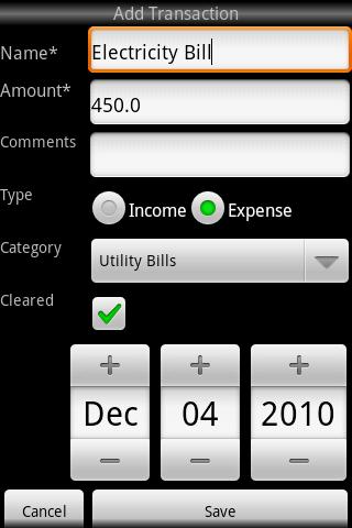 Ablility to clear/unclear a transaction to include/exclude the transaction amount from total