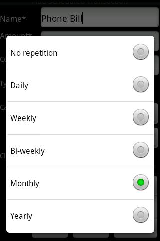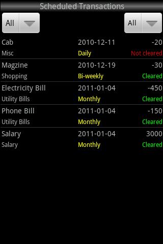 Transactions scheduled for daily, weekly, bi-weekly, monthly, quarterly, bi-annually and annually time periods
