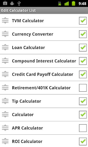 The app allows you to edit and prioritize the list of calculators for easy access.