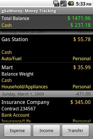 | Appname: gbaMoney Money Tracking Developer: GBizApps.com Price: Size: 371k | Version: 1.6.0 min. Android Version: 1.5 oder höher Category: Finanzen Download: Please scroll down |