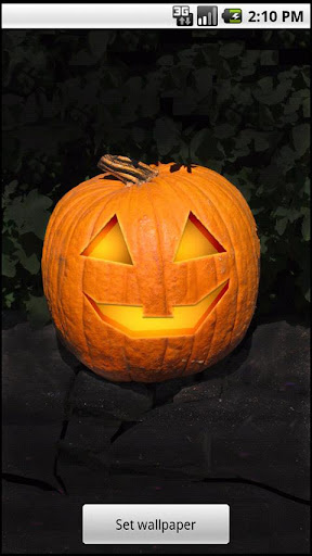 After installation, to use, go to your Home screen, then click Menu -> Wallpaper -> Live Wallpapers, and choose Halloween Pumpkin Live Wallpaper