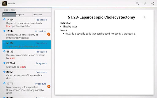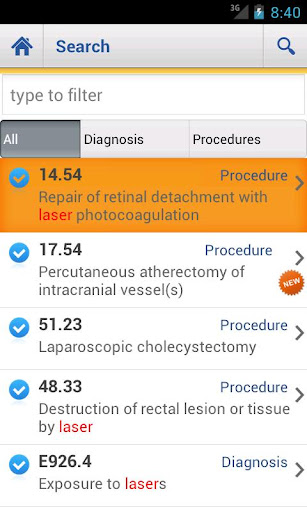 6 Support google quick search to allow search icd code without even open the application (you need to select ICD 9 CM as seachable item in search menu inside android settings like in application screenshots).