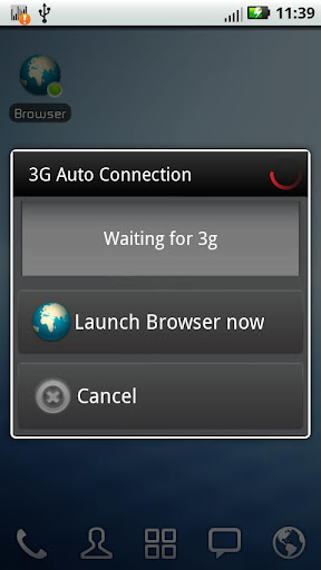With 3G Auto Connection you will not have these problems. You can add an handled link on the home, which starts up and verify whether the connection is active before starting the program of your choice.
