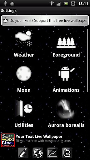 IMPORTANT: This is a live wallpaper, not an app, so there is no app icon in the launcher, find it in the live wallpapers menu.