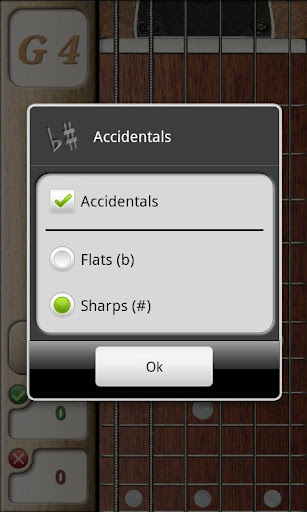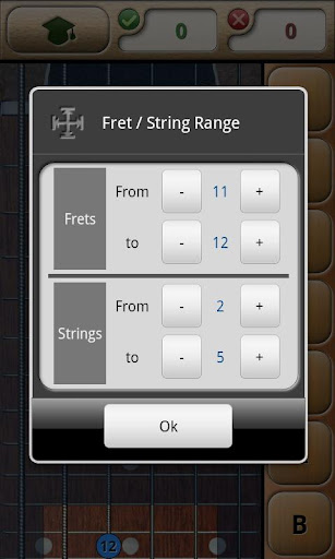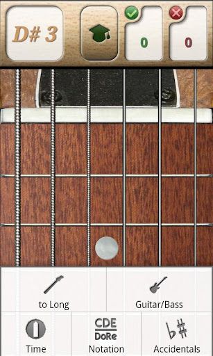 There is also a second game available, 'play'. The game presents a note (including octave number). The goal is to position the note correctly on the fretboard.