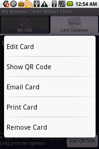 | Appname: My Business Cards Developer: Robert Chou Price: Size: 430k | Version: 1.2.0 min. Android Version: 1.5 oder höher Category: Effizienz Download: Please scroll down |