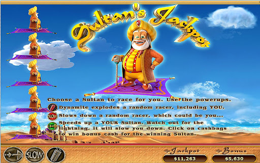 There are 75 awards to win in Mystic Genie. Beat the other Sultans in the Sultans Lightning Race to be crowned King of the Sultans!