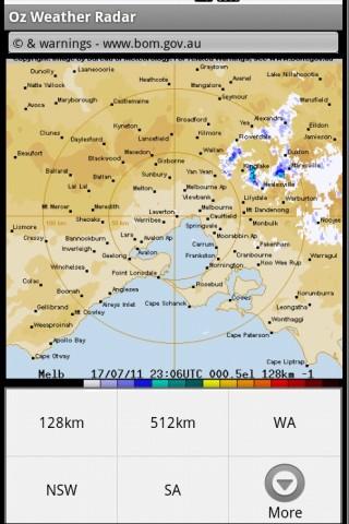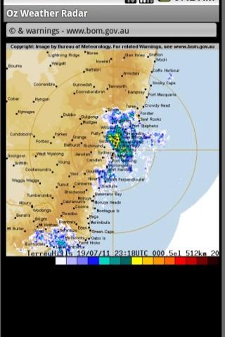 Oz Radar displays the most recent Australian weather radar (rain) images for a selected location. It shows a map of your area with an overlay of the rain radar images and your current GPS location (useful for pilots etc).