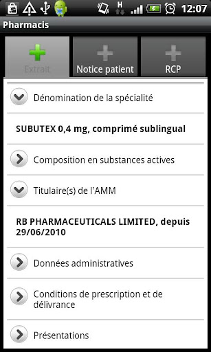 - L'extrait : un récapitulatif des données du médicament demandé (aussi appelé spécialité).