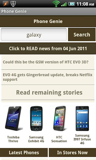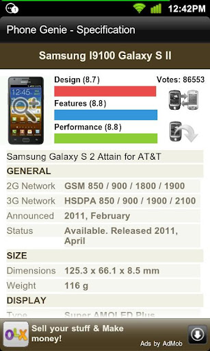 Phone Genie brings you the biggest database of mobile phones that have been available in over the last 15 years. It unleashes the power of GSMArena.com on to your cell phones and tablets, with a user interface that will adapt to whichever screen size your device has.