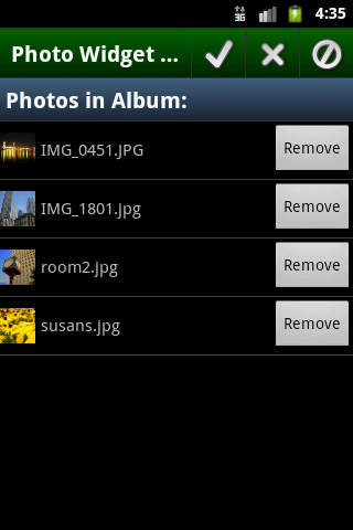 - The customizable slideshow / timer mode automatically rotates through the selected album so that new pictures are always displayed in the widget