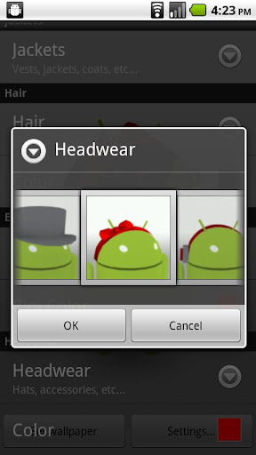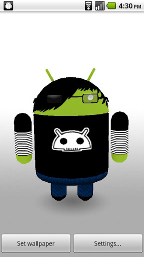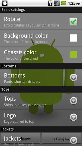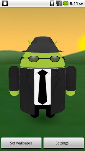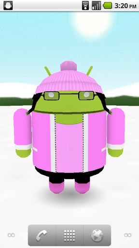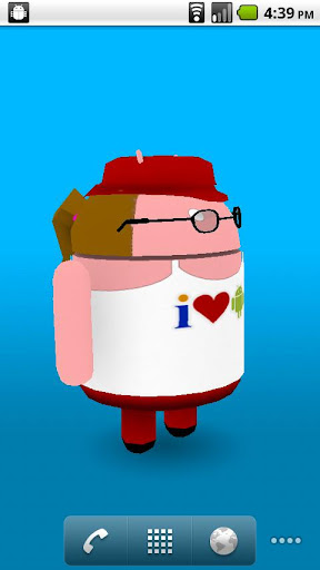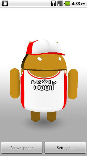 Pimp My Droid is a interactive animated 3D wallpaper. You can customize your own android with pants, shirts, hats and more. Touch the android and you will be greeted with different animations. When not entertaining you the droid still moves around. Periodic updates will bring new animations, clothing, items and features.