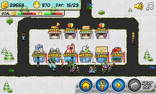For squeezing the extra amount of money from customers there are different stands available: News Stand, Ice Cream Stand, Baloon Stand, Pizza and Hot Dog Stands.