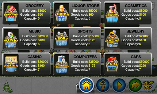 Entertain yourself by managing and upgrading the stores. Available shops: Grocery Store, Liquor Store, Beauty Shop, Cosmetics, CD/DVD shop, Sports club, Jewelery Shop, Casino, Computers store and Cars Store.