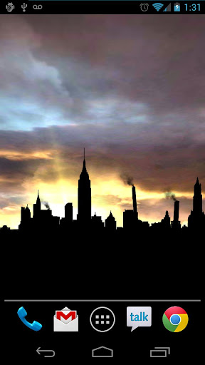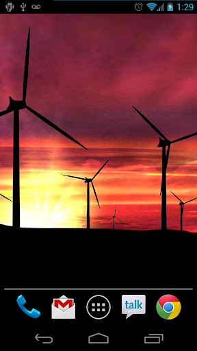 A beautiful live wallpaper of silhouetted shapes before a dramatic sunset sky. Select from a ridgeline with trees, windmills, or city! This full version has a settings screen with controls for cloud speed, time of day shifting, sky color, and more!