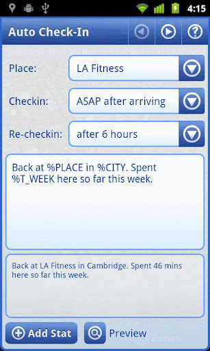 * Passe die Statistiken in Deinen Checkin- oder Checkout-Nachrichten an, indem Du Statistik-Variablen überall einfügen kannst, und nicht auf die standardmäßigen Statistiken beschränkt bist.
