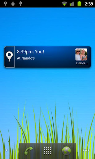* Das 4x1-Widget hält Dich über die neuesten Checkins in Deiner Nähe auf dem Laufenden, zusammen mit Name, Bild, Ort und Nachricht deines Freundes. Zusätzlich hat es einen Button zum schnellen Einchecken.