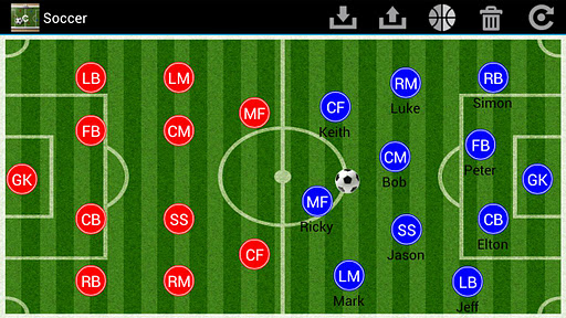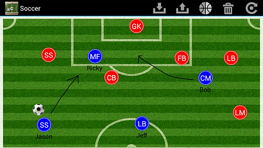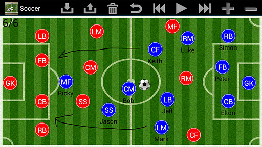 Just like an actual soccer coach's whiteboard, you can use your fingers to move players across the screen to demonstrate plays. Save yours plays into the playbook and load them quickly from the sidelines.