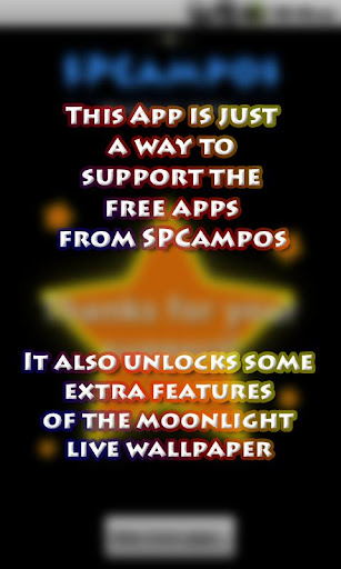 This app is just a way to support the free apps from SPCampos like Moonlight Live Wallpaper, Smart Contacts Widget or Ancient Treasures Free.