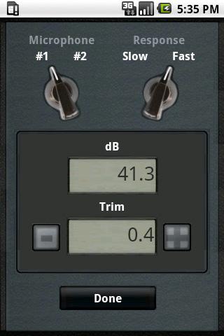 | Appname: SPL/dB Volume Levels Developer: Darren Gates Price: Size: 471k | Version: 1.0 min. Android Version: 1.5 oder höher Category: Gesundheit & Fitness Download: Please scroll down |