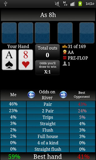 | Appname: Texas Holdem Calculator Developer: lazyson.com Price: Size: 801k | Version: 1.0 min. Android Version: 2.1 oder höher Category: Karten- & Glücksspiele Download: Please scroll down |