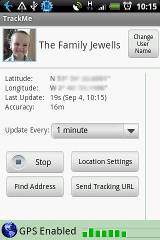 Take a photo from your phone and use it as an avatar on the tracking page. Set the update time - TrackMe will update as often as every 5 seconds, or only update every hour.
