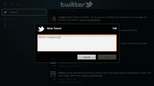 | Appname: Twitter for Google TV Developer: Twitter, Inc. Price: For free at our blog! Size: 2,2M | Version: 1.0.4 min. Android Version: 3.0 oder höher Category: Soziale Netzwerke Download: Please scroll down |