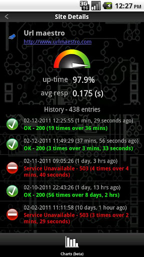 It also calculates average response time, and generates charts of daily up-time and avg response times.
