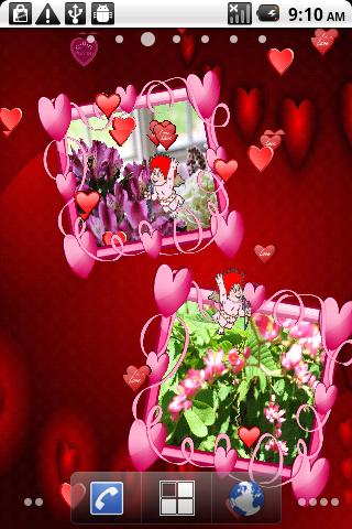 Touch-responsive hearts float across the screen as cupid passes by and shoots his arrow. In addition, you can customize your own personal picture in the 2 frames available. All you have to do is pick the pictures from your gallery. This is a great application for the upcoming valentines holiday.