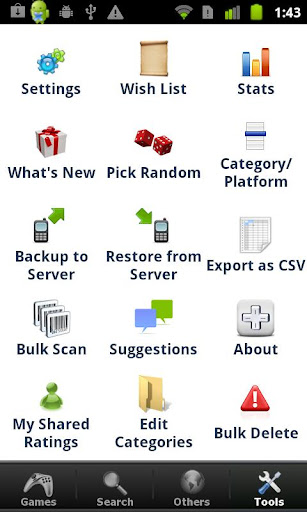 Besitzen Sie eine Menge von Spielen? Haben Sie Schwierigkeiten, den Überblick über alle Ihre Video-Spiele oder Brettspiele? Gamers, Behalten Sie Ihre Spielesammlung mit diesem Veranstalter. Verwalten Sie Spiele mit persönlichen Bewertungen und Anmerkungen, die Sie mit anderen teilen oder privat halten können. Prüfen Sie, welche Spiele die Sie bereits besitzen, während Sie einkaufen, damit Sie nicht versehentlich zu kaufen wird man Sie bereits besitzen. Lesen Spiel Rezensionen, die andere freigegeben haben. FEATURES • Verwenden Sie die Bulk-Barcode-Scan-Option, um Ihre Spiele durch schnelles Scannen des Barcodes auf Ihrem Game Cases mit Ihrem Telefon eingeben. • Sichern Sie Ihre Spielesammlung info an den Server. Wenn Sie Ihr Telefon verlieren oder ein Upgrade auf ein neues Handy, nur importieren Sie Ihre Sammlung auf das neue Mobiltelefon, so dass Sie nicht haben, um wieder in alles. • Wenn das Spiel Titelbild nicht automatisch gefunden wird, verwenden Sie die Foto-Funktion, um Ihr eigenes Foto mit der Kamera des Telefons erfolgen. • Exportieren Sie Ihre Spielesammlung info im CSV-Format und speichern Sie es auf Ihrem Telefon SD-Karte oder per E-Mail für dich. • Verfolgen Sie die Statistiken über Ihr Spiel Sammlung wie Gesamtzahl der Spiele, Average Rating, Most Completed Games, Anzahl der Spiele nach Plattform, Anzahl der Spiele nach Kategorie. (Hinweis: Diese Anwendung ist nicht ein Spiel-Player und nicht Download-Spiele, ist es für die Verwaltung Ihrer physischen Spielesammlung.) LAST UPDATE - Added-Taste, um falsche Spiel abdecken oder Beschreibung Report! - Stellen Sie Ihr Standard-Spiel Format nun unter Extras => Einstellungen. (Hinzufügen neuer Spiele werden immer PS3 oder XBox360-Format standardmäßig, wenn diese eingestellt ist) PREVIOUS UPDATES - Added Kategorien bearbeiten - Added Facebook, Twitter und E-Mail-Sharing - Added Umzug nach SDCard - Added Pick-Random Game - Swipe nach links oder rechts, um zwischen flip Spiele - Fixed bug CSV Export - Fixed bug Suche - Added Nintendo 3DS, Sega Game Gear und Master System zur Liste Console - Added Sortieren Option für Platform dann Name (alphabetisch) - Option hinzugefügt, um Bild und Übersicht unter Einstellungen verstecken - aktiviert FastScroll