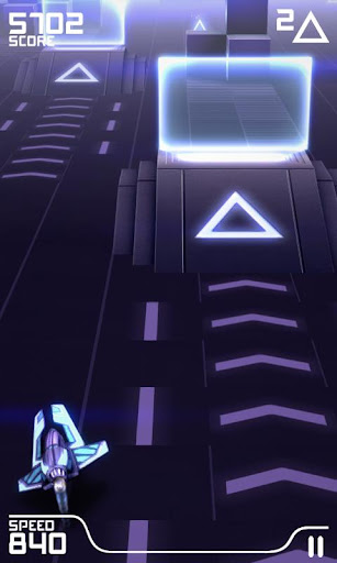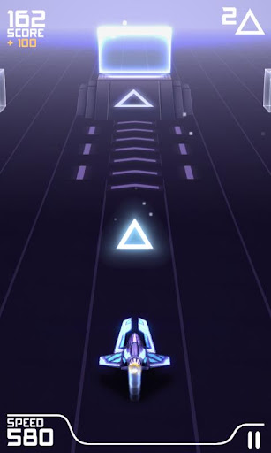 • Earn points and speed by collecting triangles and multiply your score on warp jumps.