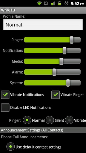 In addition to providing great customization to your contact ringtones, vibrations, etc, WhoIsIt also provides features similar to AudioManager Pro and other profile applications.