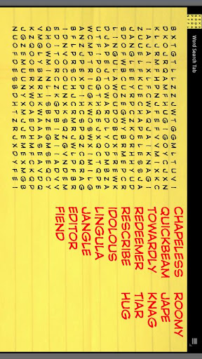 Word Search Tab is a tablet optimized word search game. Try and complete an unlimited number of puzzles. With over 65,000 words you will never play the same word search puzzle twice. Built from the ground up with tablets running Honeycomb in mind.