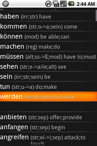 Applikation zum Konjugieren, Browsen, Suchen von über 1000 deutschen Verben