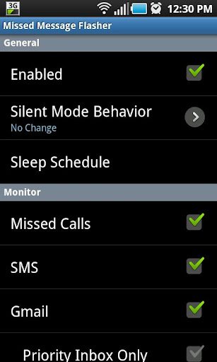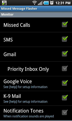 * When an SMS, Gmail, missed call, etc. is received, the app will repeatedly flash the screen, vibrate or play a sound depending on your settings.