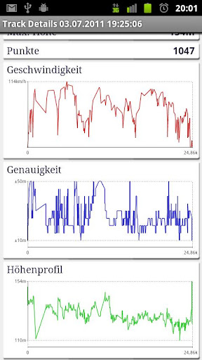 • Trackaufzeichnung (Auswertung mit Geschwindigkeits- und Höhenprofil)